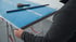 Lege deine Doppelstegplatten auf die Montageböcke. Achte darauf, dass die UV beständige Seite nach oben zeigt. Diese ist auf der Schutzfolie gekennzeichnet. Ziehe nun rundum an den Rändern der Platten etwa 10 cm der Schutzfolie auf der Ober und Unterseite ab.